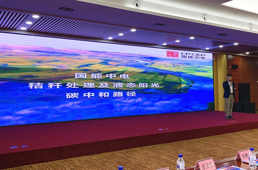 令人驚喜的是,國能中電多項綠色低碳技術和多個精品項目集中亮相本次展會。尤其是風光生物質聯合制儲氫(液態陽光)一體化碳中和技術的推出,引起了業界專家和現場觀眾的極大興趣,吸引了眾多的產業孵化項目專家以及技術相關方前來交流,多家媒體記者進行了采訪報道。在同期舉辦的高峰論壇上,國能中電以“秸稈處理及液態陽光碳中和路徑”為主題,圍繞秸稈綜合利用與風光生物質聯合制儲氫(液態陽光)技術進行了專場推介。