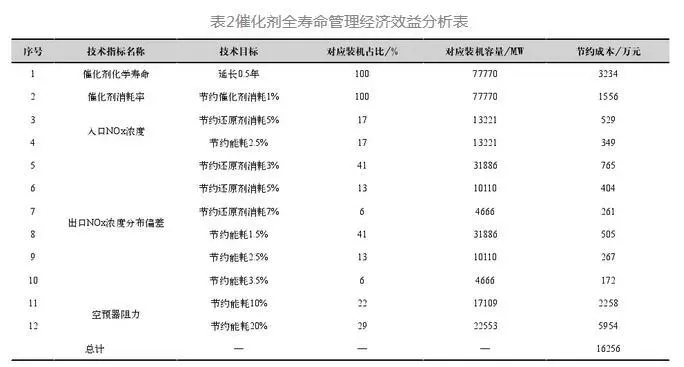 全壽命管理模式實(shí)施后,能夠提升脫硝裝置運(yùn)行穩(wěn)定性與可靠性,進(jìn)而可以有效的控制火電機(jī)組NOx排放量。另外通過延長催化劑的實(shí)際使用壽命可減少催化劑的更換量,進(jìn)而可減少廢棄催化劑的處置量,因此具有良好的環(huán)保效益。